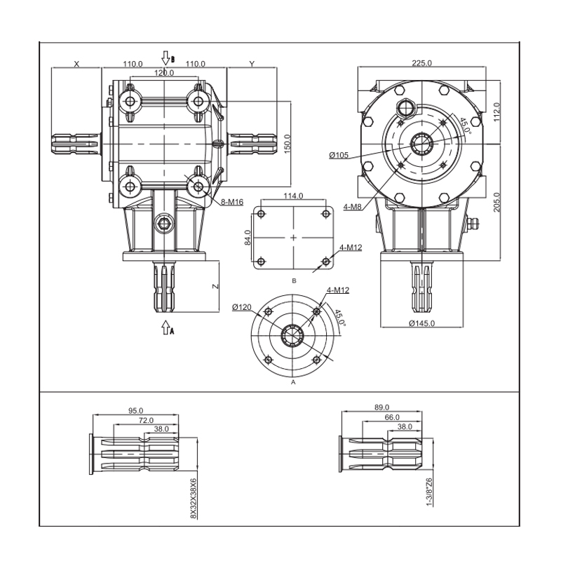 Le KLF-GC225 possède une variété de rapports de vitesse de transmission et peut être adapté à de nombreux types de machines et équipements agricoles, couvrant les concasseurs de paille, les pelouses, etc. Gleason Breaving Gearss a une précision d'usinage élevée, une précision élevée de meshing, de petites pertes de transmission et une efficacité de transfert d'énergie élevée. Puissance maximale 100 ch Ce produit est conçu avec un seul dispositif d'embrayage lorsque l'arbre de couteau tourne à grande vitesse pendant le fonctionnement. Lors de l'arrêt du travail, le tracteur arrête soudainement l'entrée de puissance. L'inertie de l'arbre de coupe est trop grande et l'embrayage unique protège efficacement l'engrenage et l'arbre des dommages.