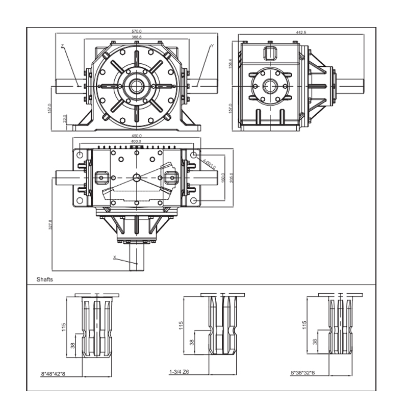 La boîte de vitesses saisit l'alimentation à travers la boîte verticale avant de la machine ou le tracteur augmente la vitesse de rotation et transmet la puissance à l'arbre de coupe-écrasement à travers l'arbre de transmission et la courroie. Grâce à la sortie double face, la largeur de fonctionnement de la machine peut atteindre 3,5 mètres à 6,5 mètres. Dans le même temps, il peut également réaliser la fonction de concassage secondaire pour obtenir un meilleur effet écrasant sur les cultures. La machine écrase la paille de recadrage puis recycle les emballages, le réutilise, ou le renvoie directement à la norme d'alimentation, ou le renvoie directement sur le terrain pour pourrir pour augmenter la fertilité du terrain. Ce type de boîte de vitesses sera utilisé dans les dispositifs de concassage de divers équipements tels que de petites balers carrés, de petites biles de poussière, de balers ronds, de machines de retour de paille, etc.